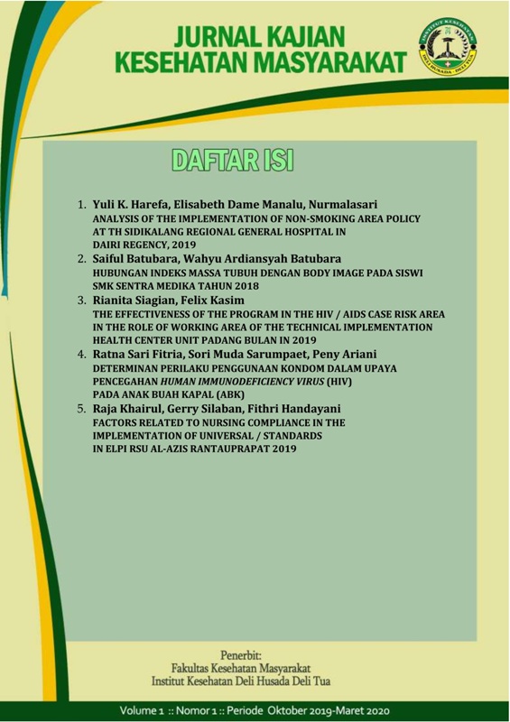 Vol 1 No 2 (2020)Jurnal Inovasi Kesehatan Masyarakat (JIKM) diterbitkan oleh Program Masgister Kesehatan Masyarakat Institut Kesehatan Deli Husada yang bertujuan memberikan ruang bagi akademisi, peneliti dan pengguna hasil penelitian dan pengabdian untuk mendiseminasikan, menginformasikan, mendiskusikan dan menggunakan hasil penelitian dan pengabdian sebagai upaya meningkatkan kualitas kebijakan di bidang kesehatan masyarakat yang berbasis ilmiah dan dapat dipertanggung jawabkan. Jurnal ini menyajikan artikel ilmiah di bidang inovasi teknologi, meteodologi, teori di bidang kesehatan masyarakat. Jurnal Inovasi Kesehatan Masyarakat (JIKM) bersifat independen, ilmiah, memberi kesempatan yang sama kepada akademisi dari berbagai jenjang dan asal pendidikan tinggi dan kami masih menerima Artikel sampai tanggal 30 April 2020